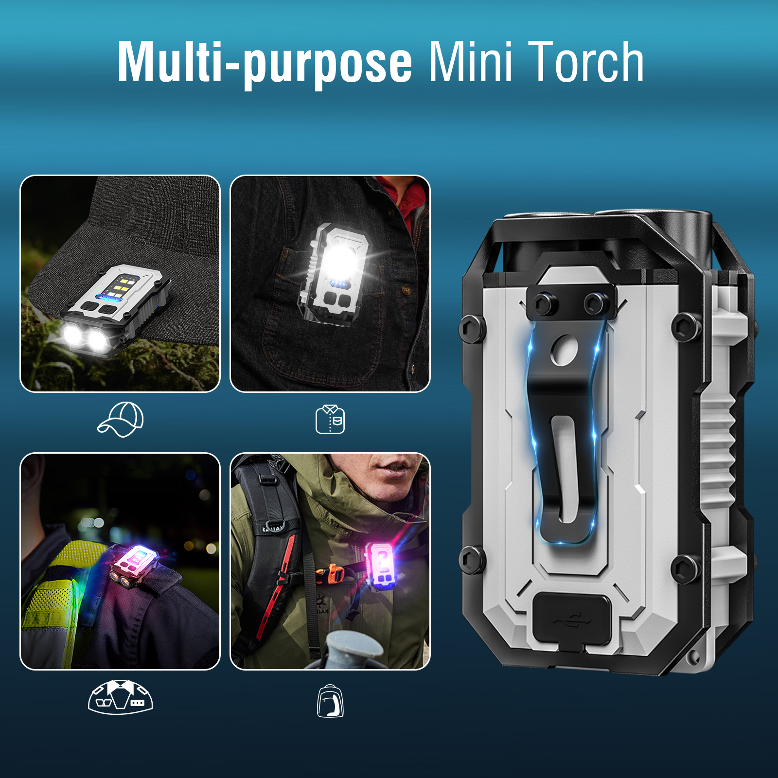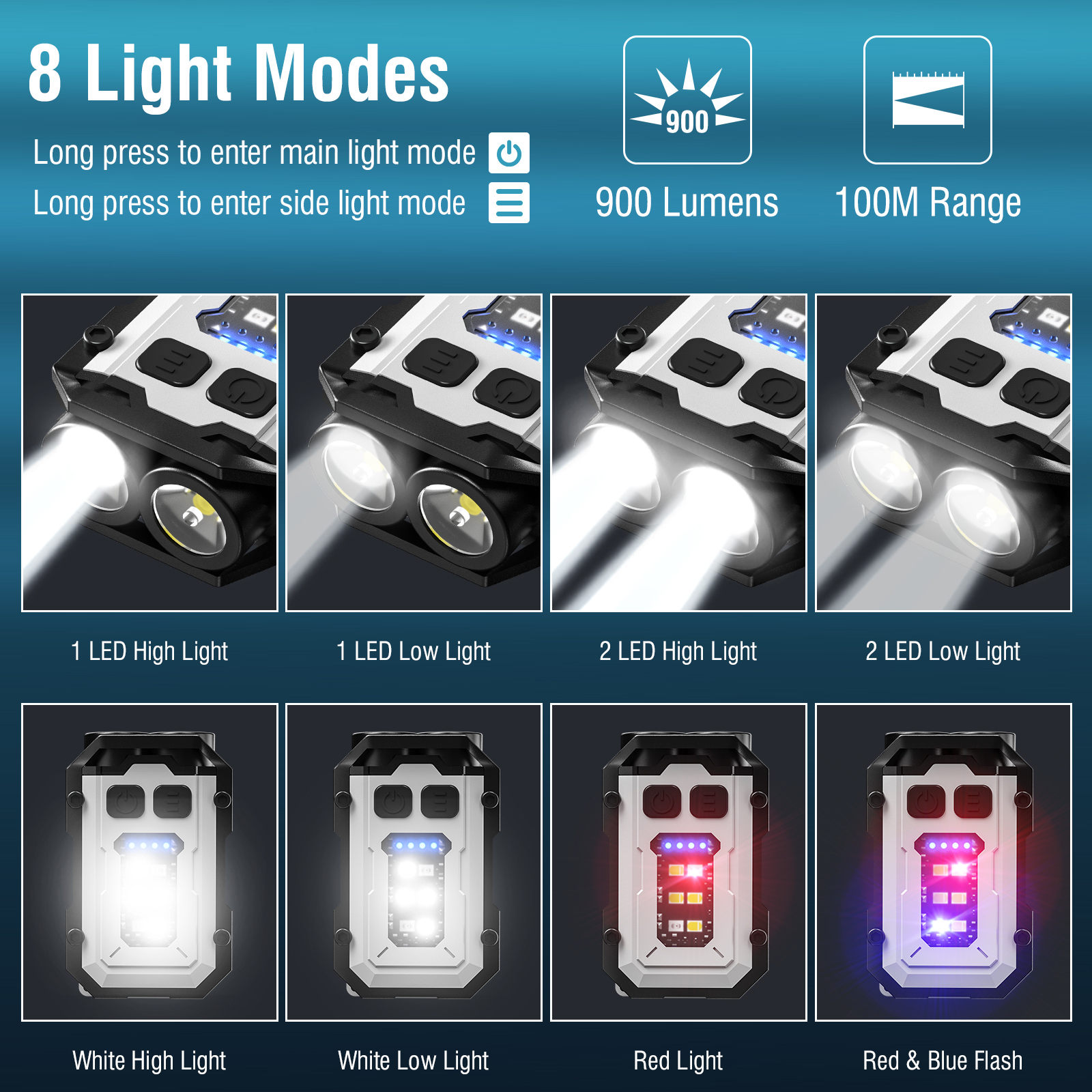 Battery Indicator: Four-segment LED lights Additional Features: Can be used as a hat clip light Lamp Chip Model: LED COB Gear Settings: 8-level dimming Product Battery: High-capacity lithium battery Uses: Hat clip light, work light, patrol light, warning light, night running light, keychain light, flashlight, etc. Features: Magnetic base frees your hands, can be easily attached to iron surfaces, strong magnet does not fall off, easy illumination Performance powerhouse, small and mini, dual lighting for both near and far, fingertip strong light experience Body only 5.7 cm, exquisite and extremely bright, fingertip strong light easily controlled, can be paired with a keychain Small body, big power, eight levels/three light sources, diversified lighting modes, meeting different usage needs