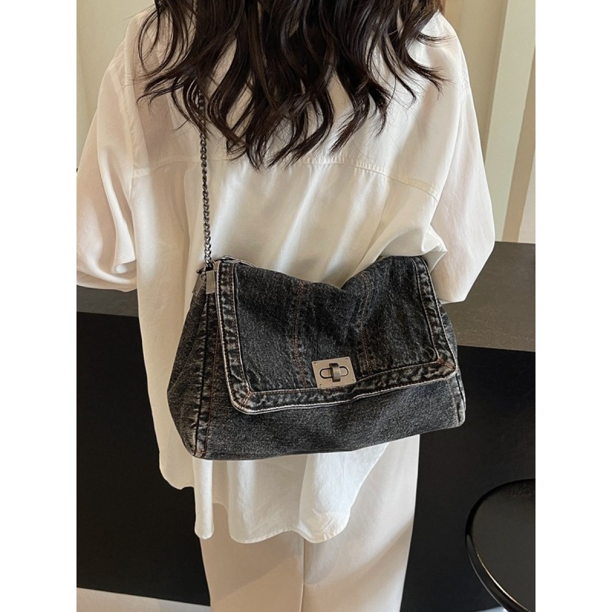 Elevate your everyday style with this versatile Women's Denim Tote Bag. Designed for both casual outings and daily commutes, it combines a spacious interior with chic, durable denim construction. The bag features a detachable and adjustable chain strap, allowing you to effortlessly switch between a polished shoulder carry and a hands-free crossbody style. Its classic design and sturdy fabric make it a perfect match for any outfit, from weekend casual to office wear. More than just a bag, it's your reliable companion for carrying all essentials in organized, fashionable ease.