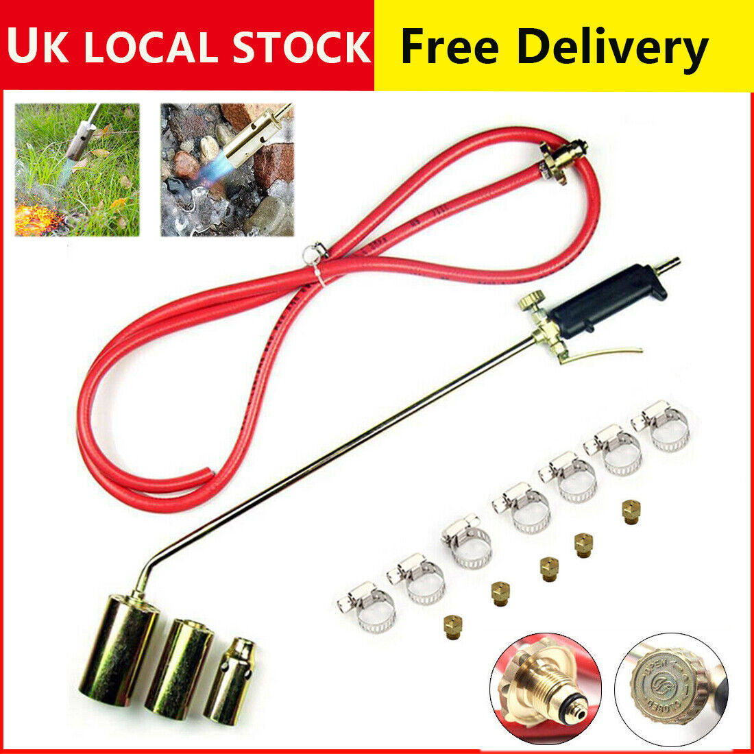 Long Arm Propane Butane Gas Torch Burner Blow Kit Roofers Roofing Brazing+Hose