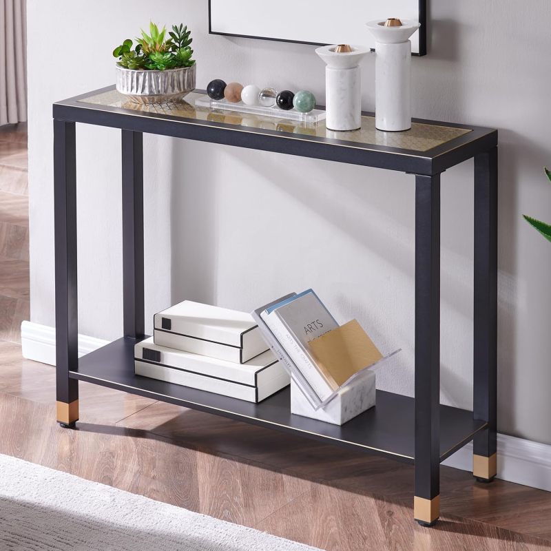 Product Name:Glass Entryway Table, 2-Tier Entry Way Console Entrance Table, 41"L Narrow Sofa Table with Shelves, Ideal for Hallway, Entryway, Living Room, Foyer, Corridor, and Office (Gold & Black)