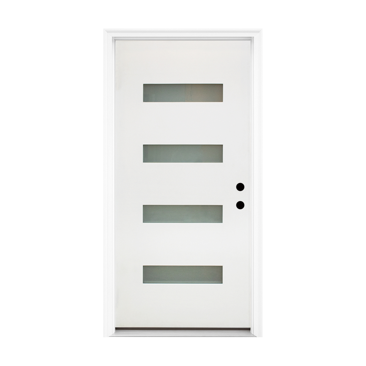Product Name:36 x 80 Fiberglass Entry Door with Brickmould, Frosted Glass - Contemporary Style for Home's Front Entrance, Left Hand Inswing, White Finished Knock-Down Fiberglass Door with 6-9/16 White Vinyl Frame