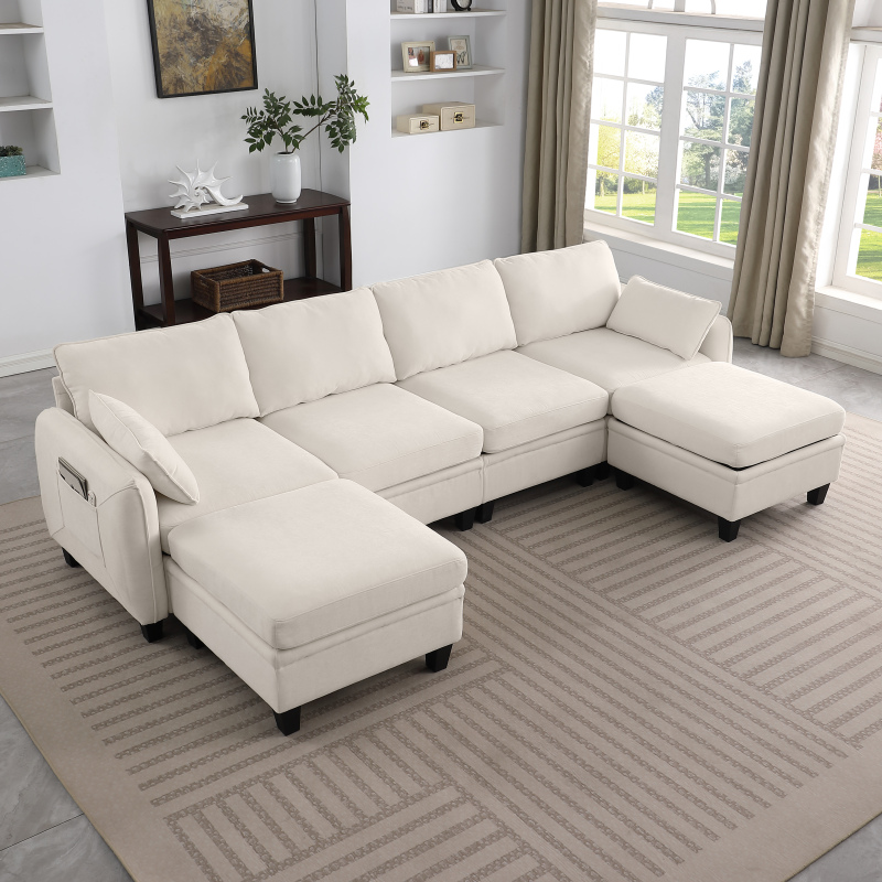 Product Name:109 Inch Beige Chenille Modular Sectional Sofa, L-Shaped Cloud Couch with Storage Ottoman, DIY Combination for Living Room