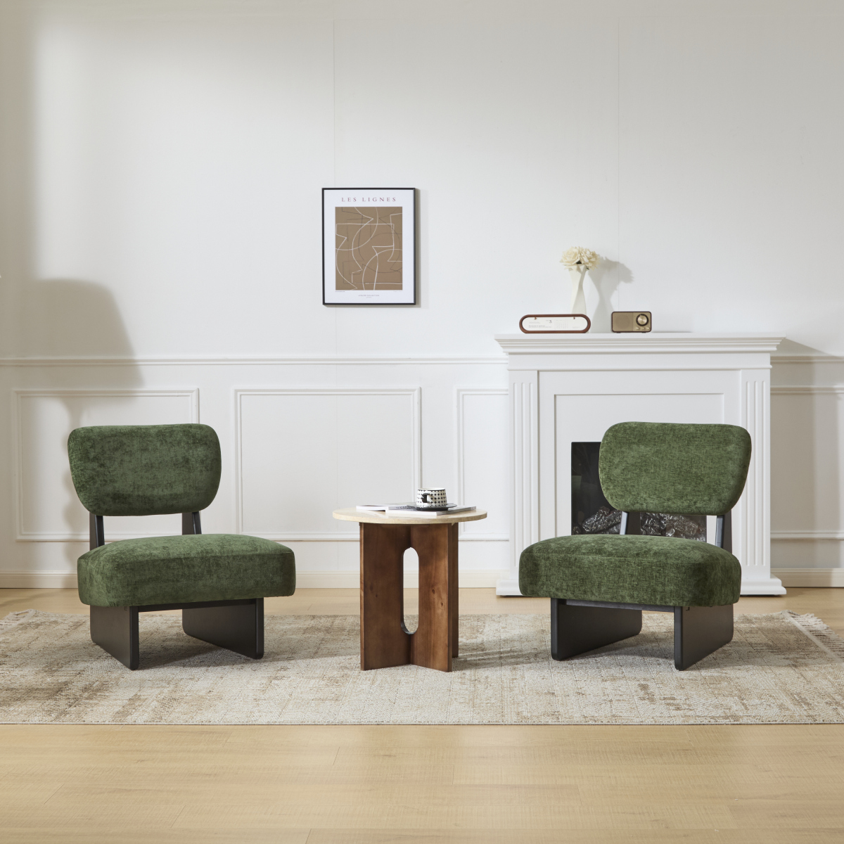 Product Name:[Set of 2] Modern Green Lounge Chair with Polyester Upholstery, Sturdy Wood Base With Black Finish, Minimalist and Stylish Accent Seating for Living Room, Bedroom, or Office