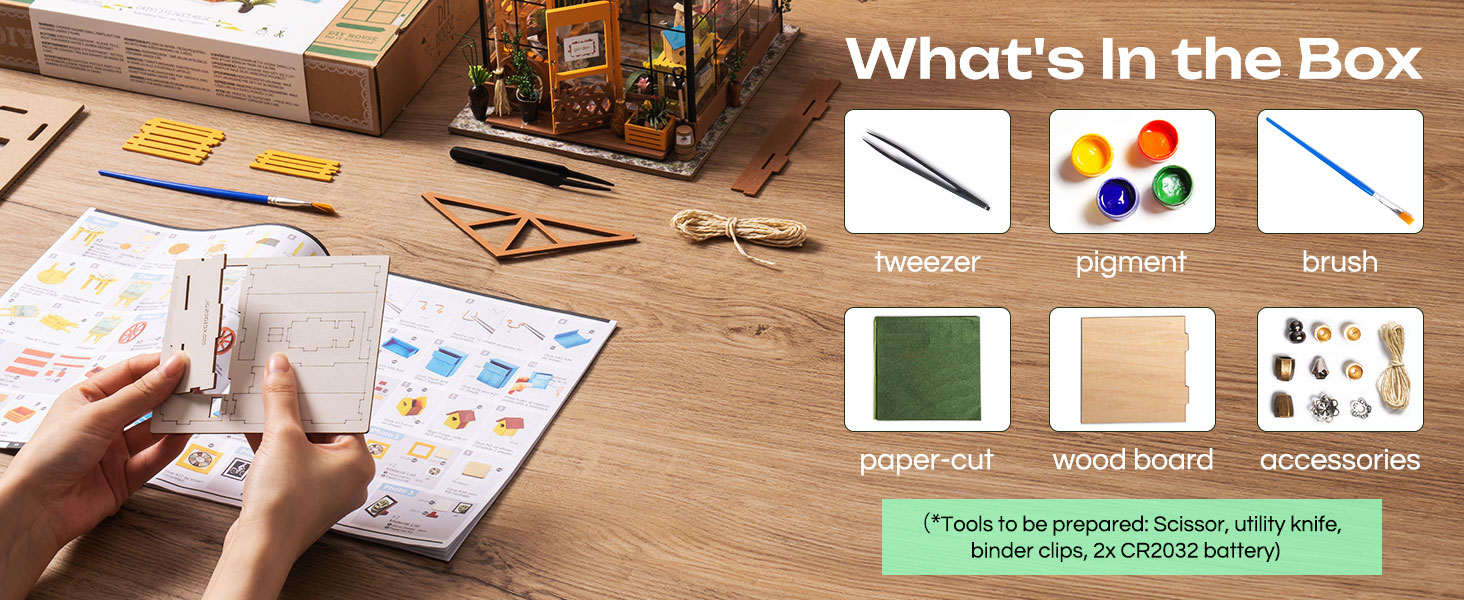 【Rich Variety of Plants】The greenhouse is harmoniously and beautifully arranged with over twenty different plants. Equipped with a full range of gardening tools and a simple easel, this greenhouse creates a rich botanical world for plant lovers.