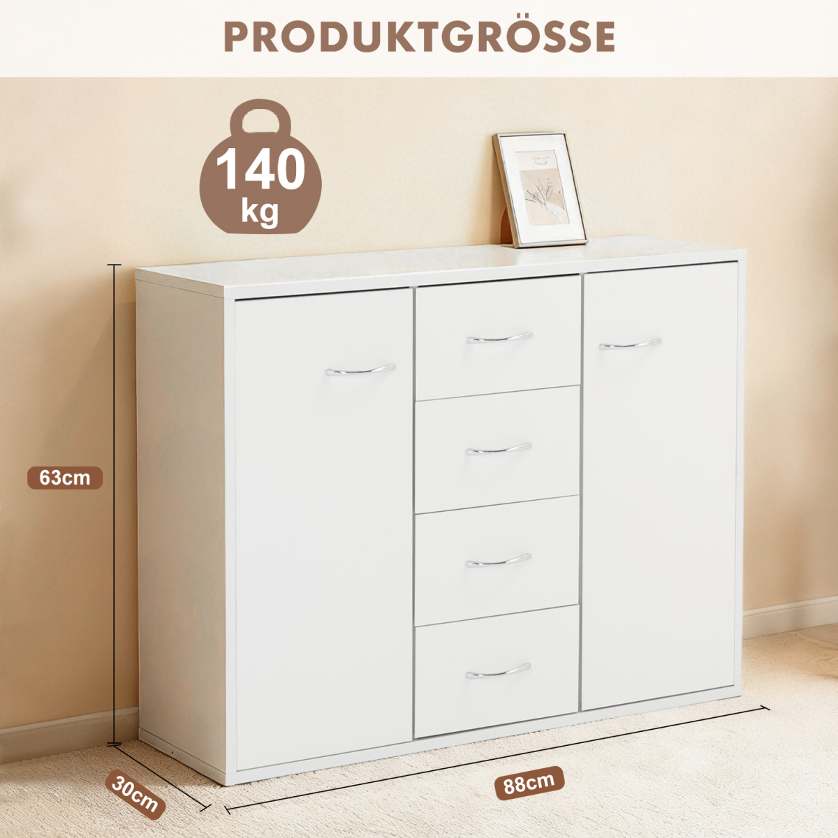 | 3-Column 6-Drawer Wooden Cabinet - 35IN White | MZG-3L6C-35IN-WT | 134 | 40 | 21.5 |