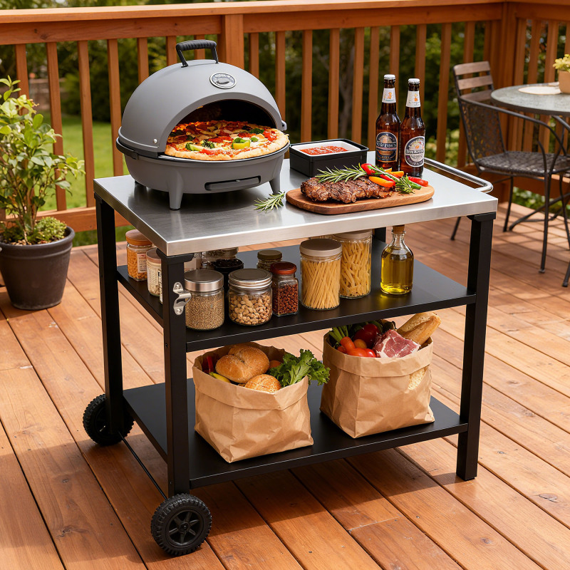 • Multifunctional DesignVersatile enough to serve as a BBQ prep station, pizza oven stand, outdoor bar cart, or serving table. Perfect for backyard grilling, camping trips, poolside parties, and more, adapting to your lifestyle.
