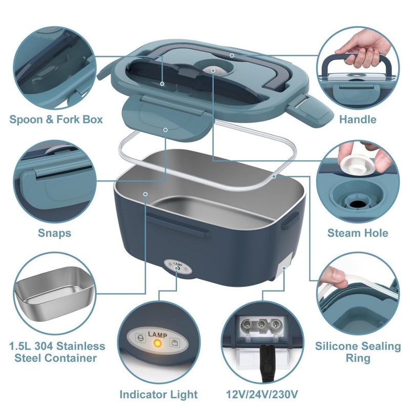 Are you still worried about the food/water leakage from the electric lunch box? With the upgraded design and craft, this electric lunch box's lid latches and the rubber sealing ring make it totally leakproof, so it is very convenient for you to take it everywhere(The heating process takes about 30 minutes)