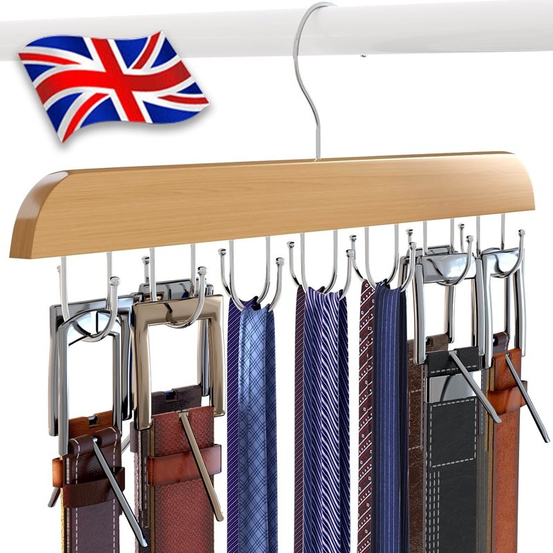 14 hooks:The belt organizer features a double-sided hooks design with 14 stainless steel hooks,7 on each side.