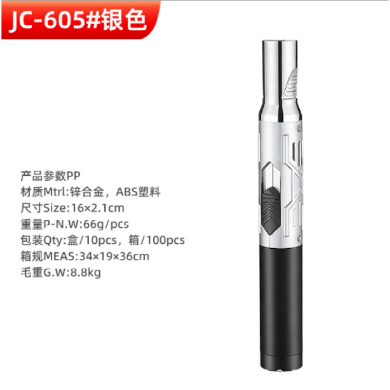 Silver Torch-shaped Refillable Propane Torch Lighter, Portable Straight-handle Lighter, Suitable For Candle Grills, Fireplaces, Camping, And Barbecues.