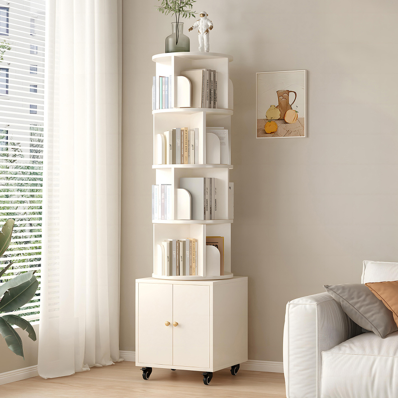 Product Name:Rotating Bookshelf, 360 Degree Display 5 Tier Corner Bookshelf with Drawer for Small Space, Floor Standing Bookcase Storage Rack, Wood Narrow Organizer for Bedroom, Living Room, WHITE COLOR