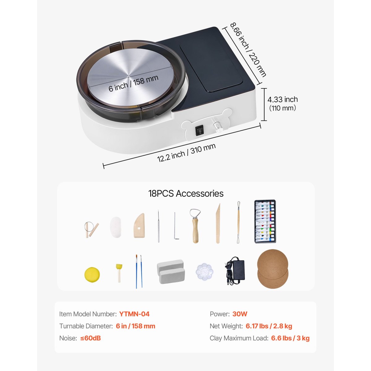 Mini Pottery Wheel: This mini pottery wheel for kids and adults features a powerful 30W motor and a 6 in aluminum alloy turntable. Durable and stable, it supports up to 6.6 lbs of clay—ideal for different ages to explore ceramic creativity
