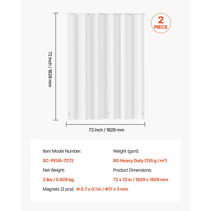 8G Heavy Type: Crafted from thick 8G PEVA, this shower liner hangs naturally and does not easily cling to the body. It provides light blurring and diffusion, and works best when paired with a polyester curtain for added privacy