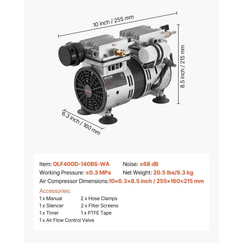 550W High-Power Motor: The pond aerator features a 3/4 HP oil-free compressor delivering up to 5.2 CFM at 1665 RPM. The energy-efficient motor improves water quality faster, while the oil-free design provides cleaner air output and lowers maintenance costs
