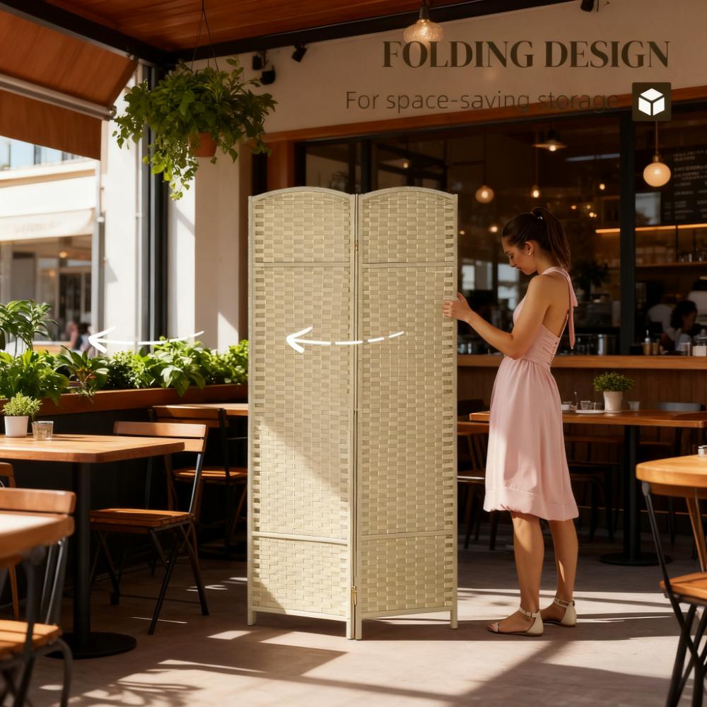 Features: - It features a weaving pattern with an elegant arched top - Create private sections or use it as a decorative background in any room - Solid pine wood frame provides strong support - Polypropylene assures enhanced privacy and durability - Four-panel folding design with 9 metal hinges allows for easy storage - A lightweight design makes it easy to move - No assembly required Specification: - Color: Beige - Materials: Polypropylene, Pine Wood - Overall Dimensions: 63" W x 0.6" D x 66.9" H - Folded Dimensions: 15.7" W x 2.5" H x 66.9" H - Single Panel Size: 15.7" W x 0.6" D x 66.9" H - Foot Height: 2.6" H - Net Weight: 11 lbs. - Package Includes: - 1 x Room Divider - 1 x Manual