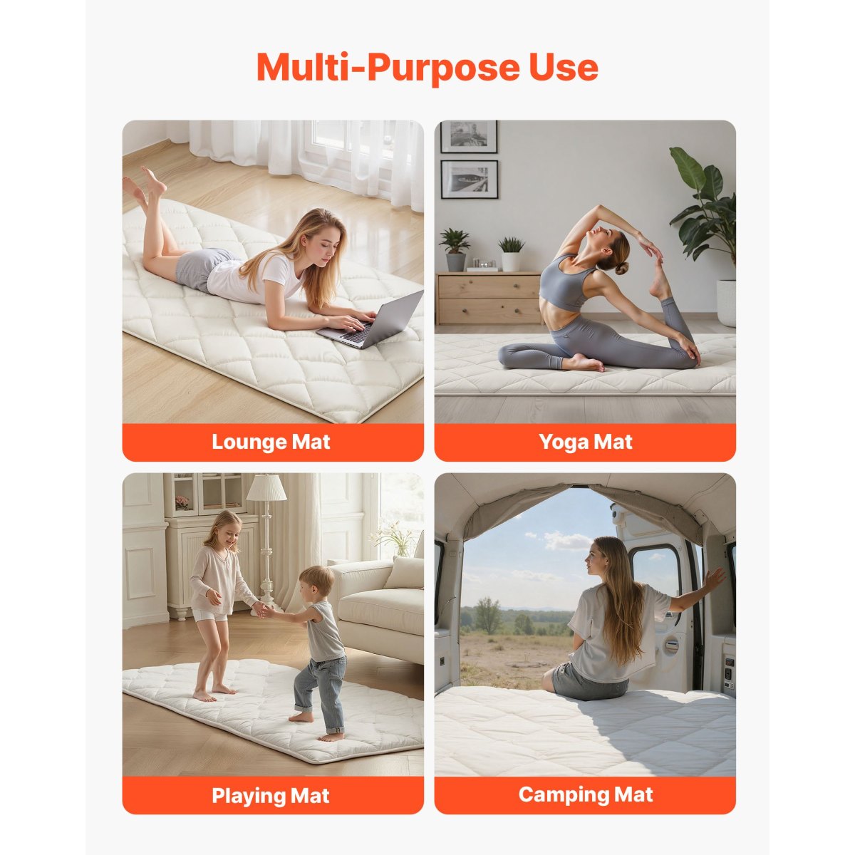 Fits Any Space: This versatile futon mattress works as a bedroom floor mattress, living room tatami, guest bed, yoga mat, kids' play mat, pet mat, or camping mat. Combine multiple tatami mats for a wider or thicker sleeping area to meet your needs