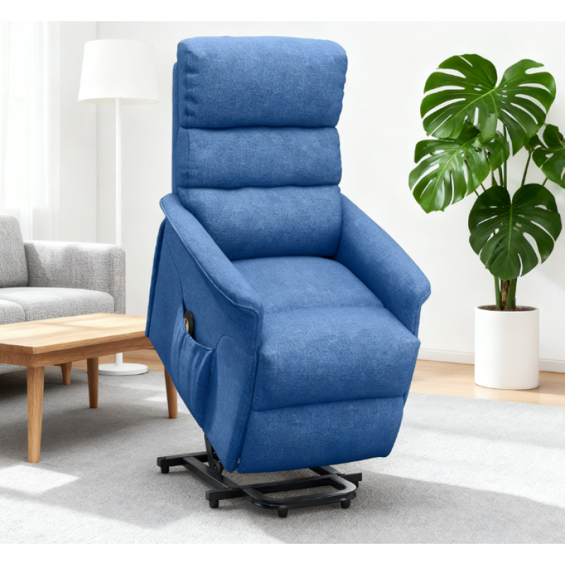 Features: - It assists you into an almost standing position - Power reclining up to 135° with footrest for comfort - Steel frame for support - Linen-feel fabric is breathable and soft - Seat with spring pack for comfort and support - Easy installation: insert the bolts to assemble the backrest - Remote fits handily into the side pockets Specification: - Color: Blue - Materials: Linen (100% Polyester), Foam, Steel, MDF - Upright Size: 26" W x 35.5" D x 37.75" H - Reclined Size: 61.75" L x 26" W x 32" H - Seat Size: 18.5" W x 21.5" D x 17.75" H - Back Size: 20.75" H x 7" D - Armrest Size (Height to Floor): 3.5" W x 28" D x 22" H - Input: 100-240 Volt, 50/60 Hertz, 1.5 Ampere - Output: 29 Volt/1.8 Ampere, 52.2 Watt - Power Cord Length: 3.9' L - Weight Capacity: 264 lbs. Package Includes: - 1 x Power Lift Chair - 1 x Remote - 1 x Manual