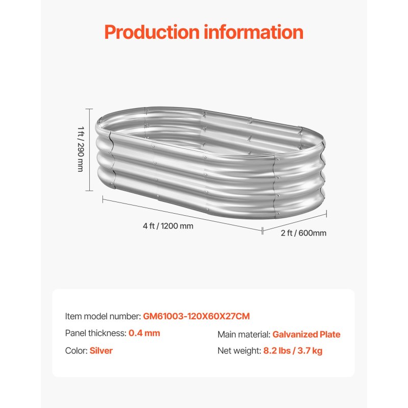 Sturdy and Reliable: Made from 0.4 mm rust-proof galvanized panels, this metal raised garden bed is sturdy and built to last. Designed for long-term outdoor use, it is ready to withstand the elements and support your gardening all year round
