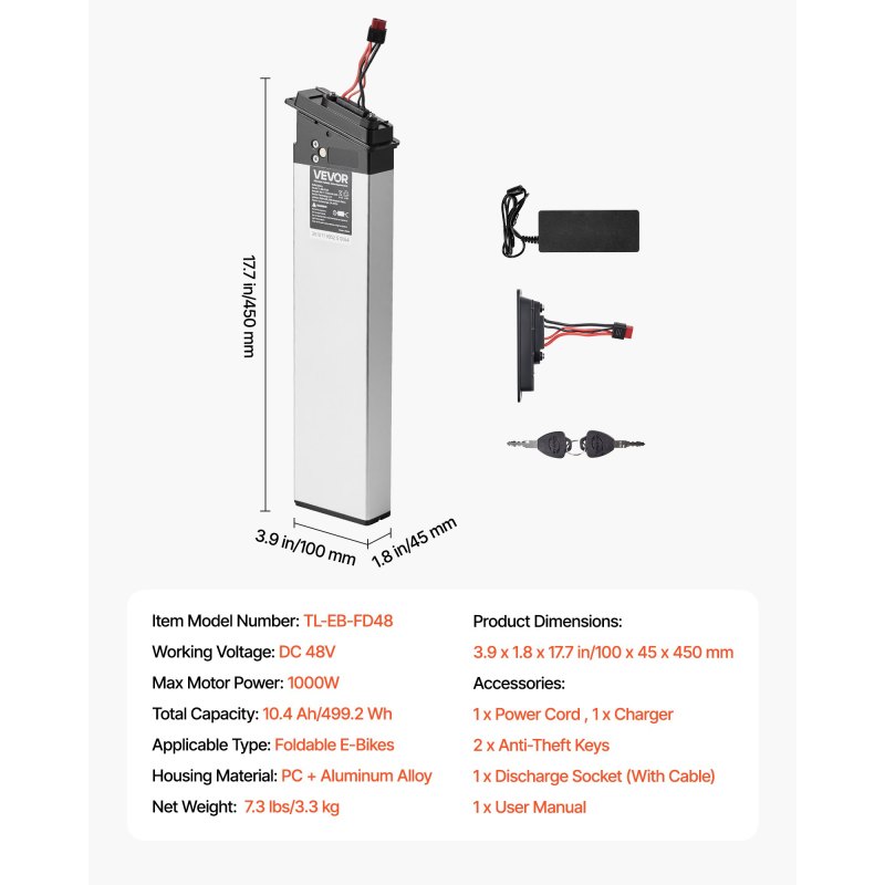 Reliable Daily Commute: Equipped with 10.4 Ah (499.2 Wh) capacity, this electric bicycle battery provides reliable runtime for daily commutes and last-mile rides. Its compact, lightweight design is suitable for city riding or bike plus public transit trips