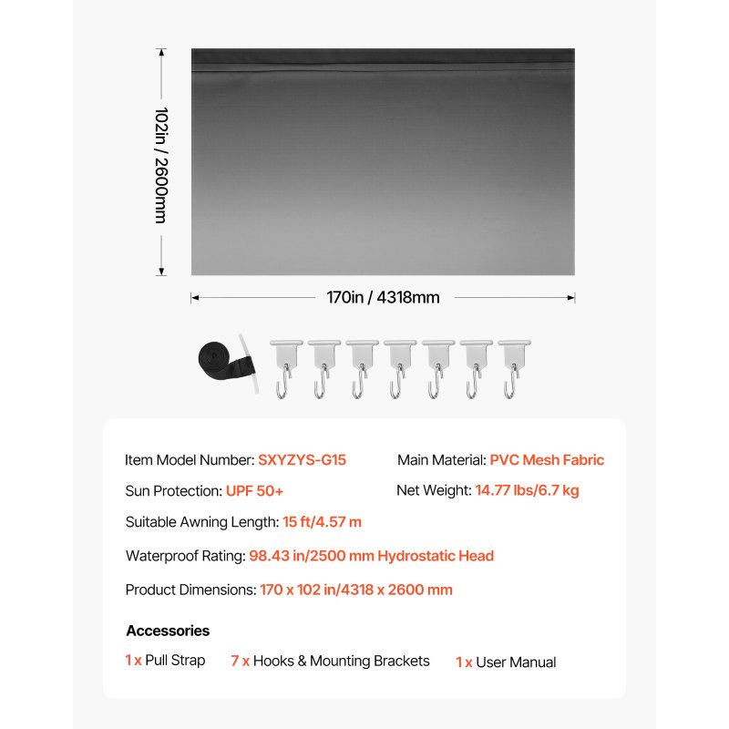 UPF 50+ & Waterproof: This RV awning fabric replacement blocks 98% of harmful sunlight and withstands up to 98.43 in (2500 mm) hydrostatic head. It keeps your RV dry and cool in rain or intense sun while resisting dampness