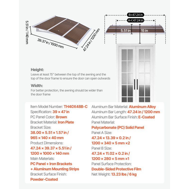 Quick DIY Installation: This exterior door canopy comes with a complete accessory kit, clear installation instructions, and two types of mounting screws for brick, concrete, or wooden walls. Easy for one-person DIY installation. Measure your space for an ideal fit