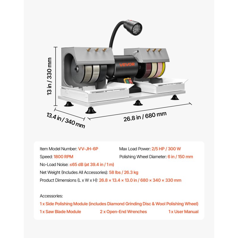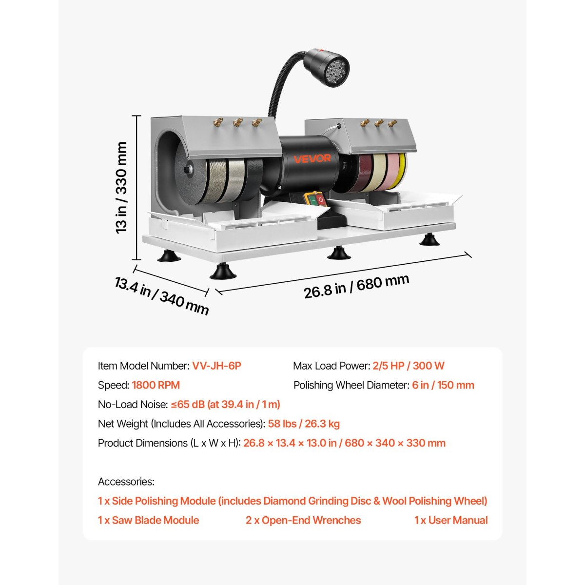 Powerful Performance: Powered by a smooth, low-noise 2/5 HP, 1800 RPM direct-drive motor, this lapidary rock grinder polisher creates cabochons for necklaces, earrings, and rings, and also polishes ceramics, metal pendants, wood, and other crafts