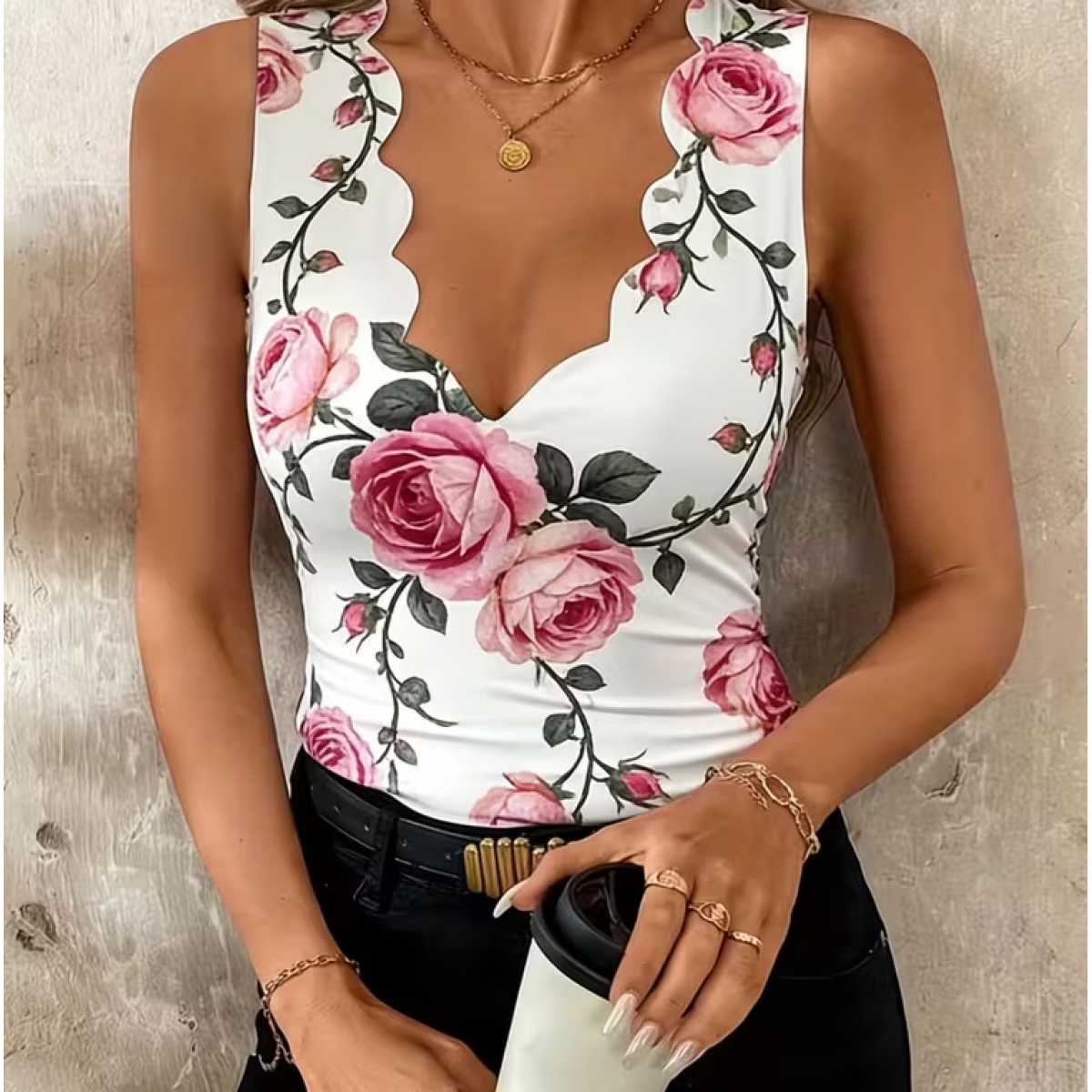 Design: Wavy V-neck, sleeveless slim fit, romantic and elegant