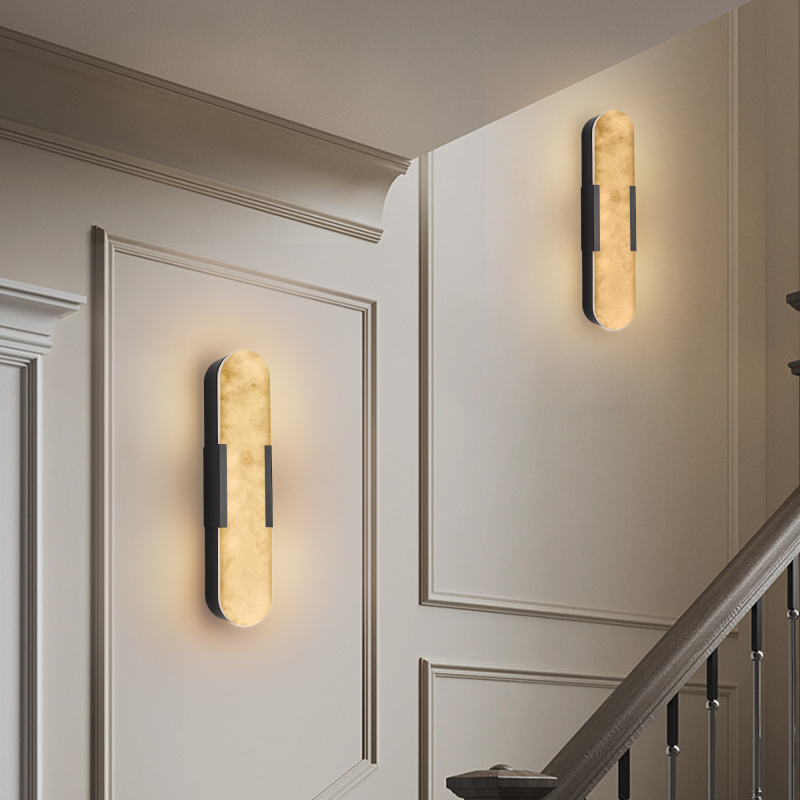 19.7in Natural Marble Wall Sconce, Black Sconces Set Of Two, Indoor Modern Bathroom Sconces Wall Lighting For Living Room, Bedroom, Hallway, Stairs