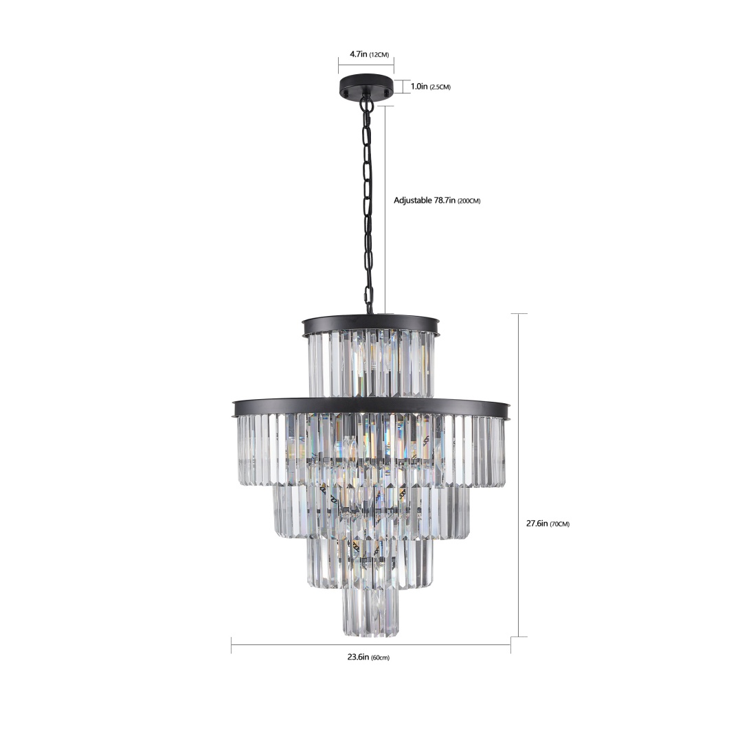 Shine Bright Like a Diamond:selected the TOP K9 crystal and the highest standards in the industry have been adopted from the manufacturing stage. Modern Crystal Chandelier with finished is a beautiful piece. With its sophisticated beauty and stunning details will fits your every space.E12 Bulb*15 Required Chandeliers: compatible with E12 LED bulb, Incandescent, energy-saving, halogen, etc. The brightness depends on the bulb you put in, if you want brighter light, please use high-watt E12 bulb(60w max),The chandelier it's compatible with dimmable bulbs and wall switch.Chandelier Light Fixture Size: Crystal chandeliers with 23.6 inches wide and 27.6 inches high. Please check the size of the chandelier lighting fixture before purchasing.Simple Assemble: Crystals come in 1 size, each crystal strand needs to be hanged one by one. When the chandelier lights up for a moment, everything is worthwhile all the effort will be transformed into your smile.Suggested Space Fit: Securely wrapped crystal high ceiling light fixture. light up your Living Room, Dining Room, Porch, Staircase, Foyer, Hallway, add some elegance to your home with this crystal chandelier ceiling light.
