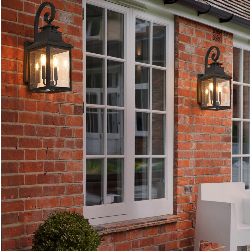 RETRO STYLE DESIGN - Black finish, reliable quality aluminum. Frosted glass panels allow the bulbs to be seen. Traditional wall light style.WIDE APPLICATION - This retro styled matte black finish post lights can be a beautiful addition to your house, porch, patio, walkway, doorway, garden, garage or any other exterior and interior places.BULB REQUIREMENT: Requires2 x E12 base 40W bulb (incandescent, LED, or CFL). Bulb not included.EASY INSTALLATION: Hard wired. This outdoor wall mount light includes all mounting hardware for quick and easy installation.