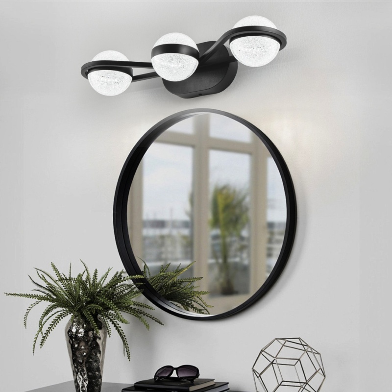 Modern and simple design:3 Lights bathroom Vanity Lighting. Modern and simple style design, suitable for your bathroom, mirror cabinets, powder room, bedroom and living room etc. Modern vanity light brightens your living instantly.High quality construction: High-quality Black Frame, with advanced electroplate craft and sealing technology, dust-proof, fog-proof, anti-corrosion, and moisture-proof, is suitable for humid environment.Energy saving technology: Creates stable and efficient light. LED technology saves up to 80% electricity compare to conventional light bulbs and lifespan up to 50,000hours.Easy to install: With easy-to-follow instructions and all necessary hardware included, anyone can install these lights quickly and hassle-free.