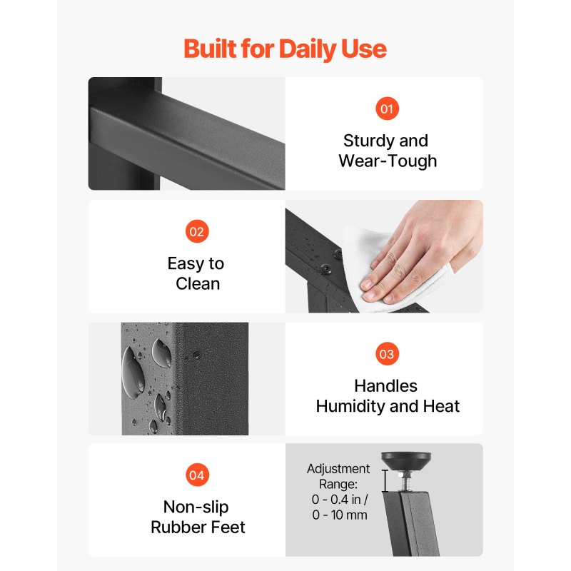 Engineered for Durability: Constructed from high-strength carbon steel, each table leg features a powder-coated surface that resists fingerprints and cleans easily. Features 0-0.4 in / 0-10 mm adjustable leveling feet to help you easily level the table