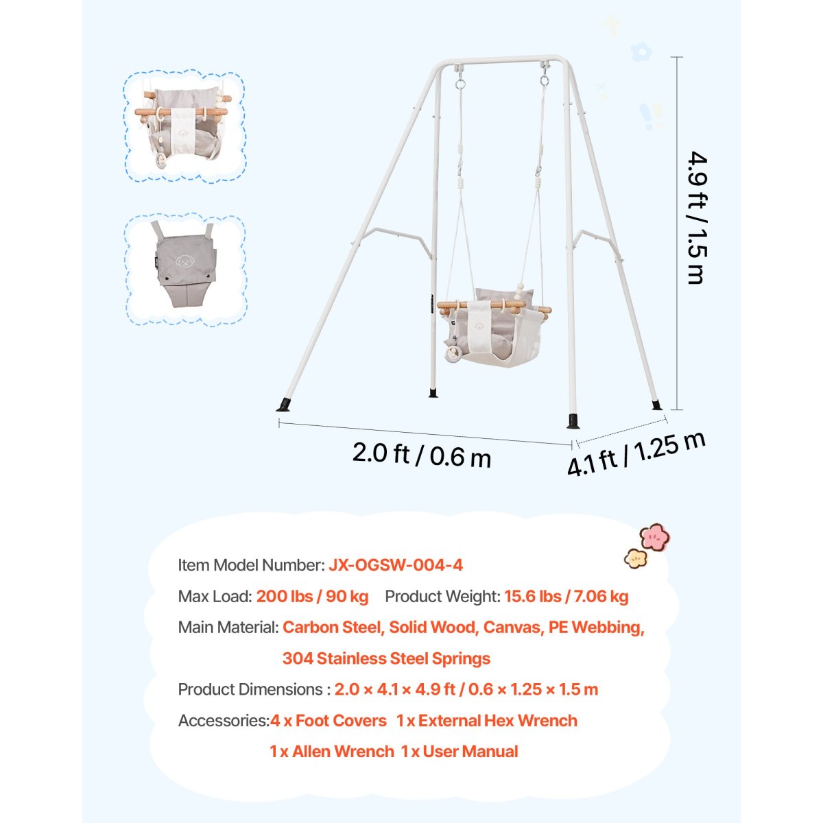 Sturdy Frame: The steel A-frame structure forms a stable triangular base that supports gentle swinging and jumping while helping keep the toddler swing set and jumper steady during use