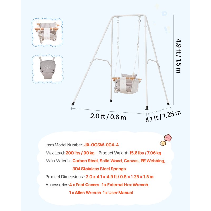 Swinging & Jumping: This toddler swing and jumper set supports two play modes, featuring a fabric toddler swing with adjustable ropes and a spring bounce seat for gentle swinging and jumping play