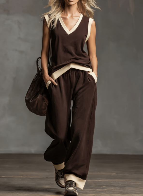 V-neck sleeveless wide leg set
