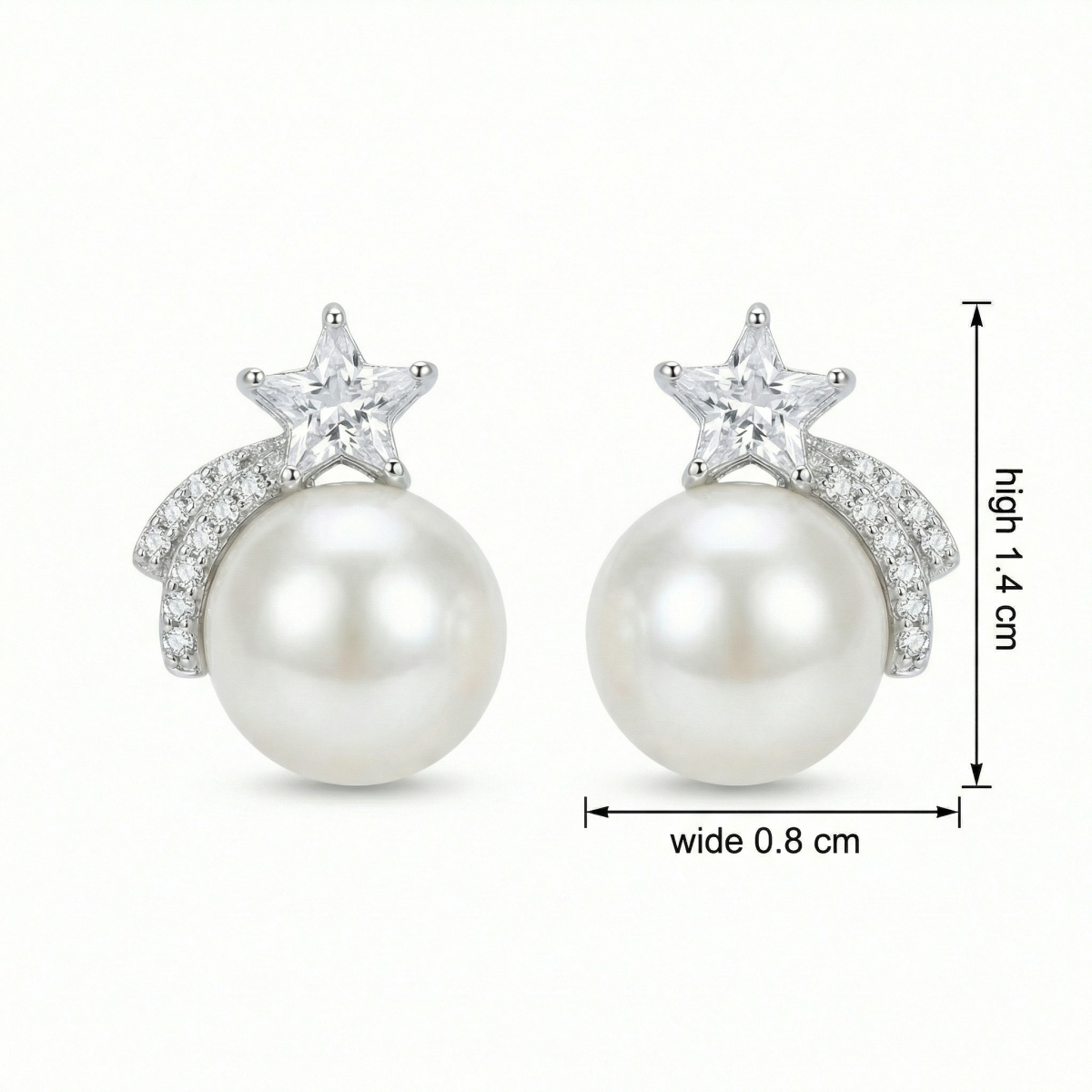 These stunning earrings combine timeless elegance with a whimsical celestial theme. Each piece features a large, lustrous white pearl at its center, topped with a brilliant star-shaped gemstone that radiates light. A graceful, curved trail of pavé-set accents sweeps down the side of the pearl, mimicking the movement of a shooting star. Crafted in polished silver-tone metal, these earrings offer a sophisticated sparkle perfect for formal events or as a meaningful gift. Their unique design beautifully blends classic pearl jewelry with modern, astronomical inspiration. | Brand: jewelryodm