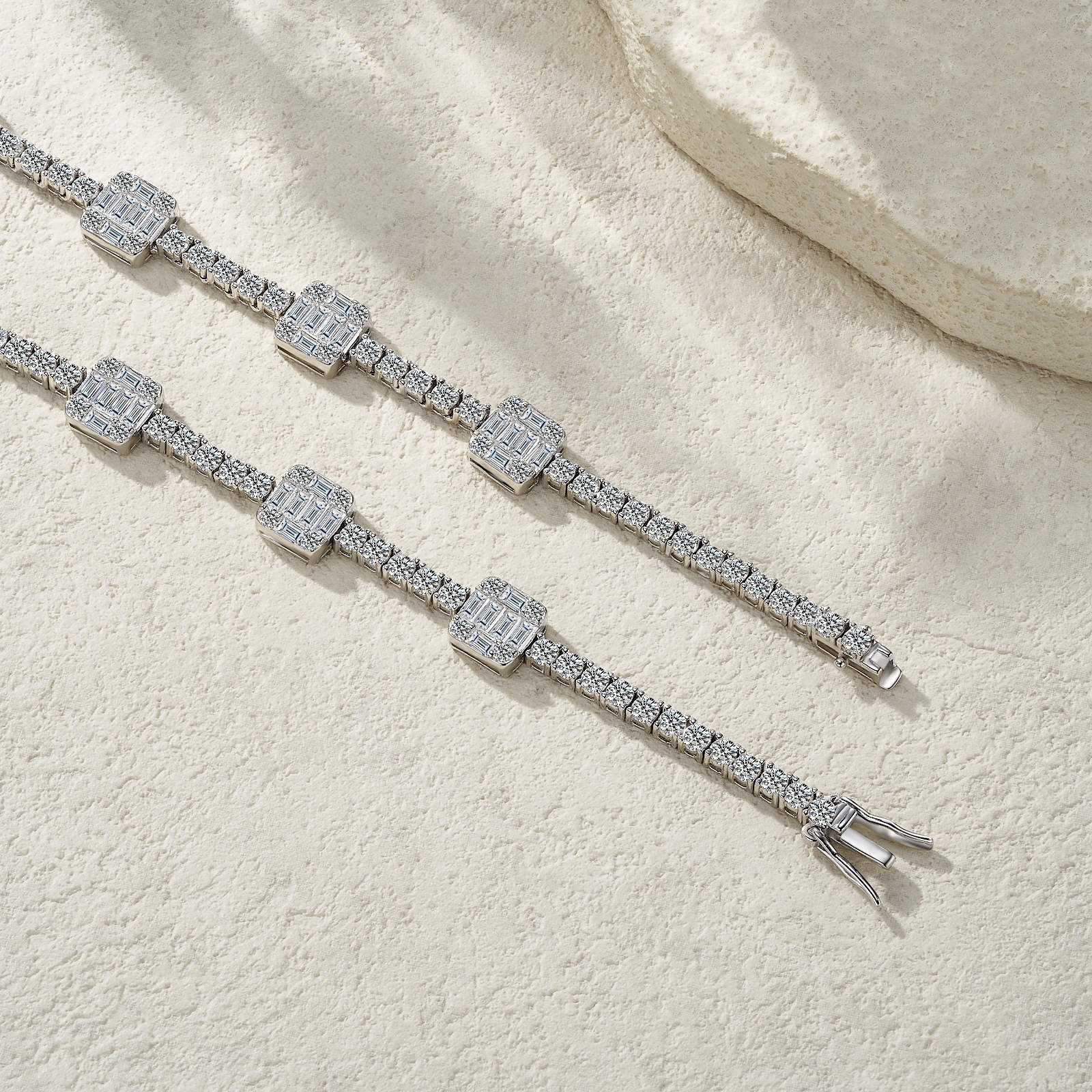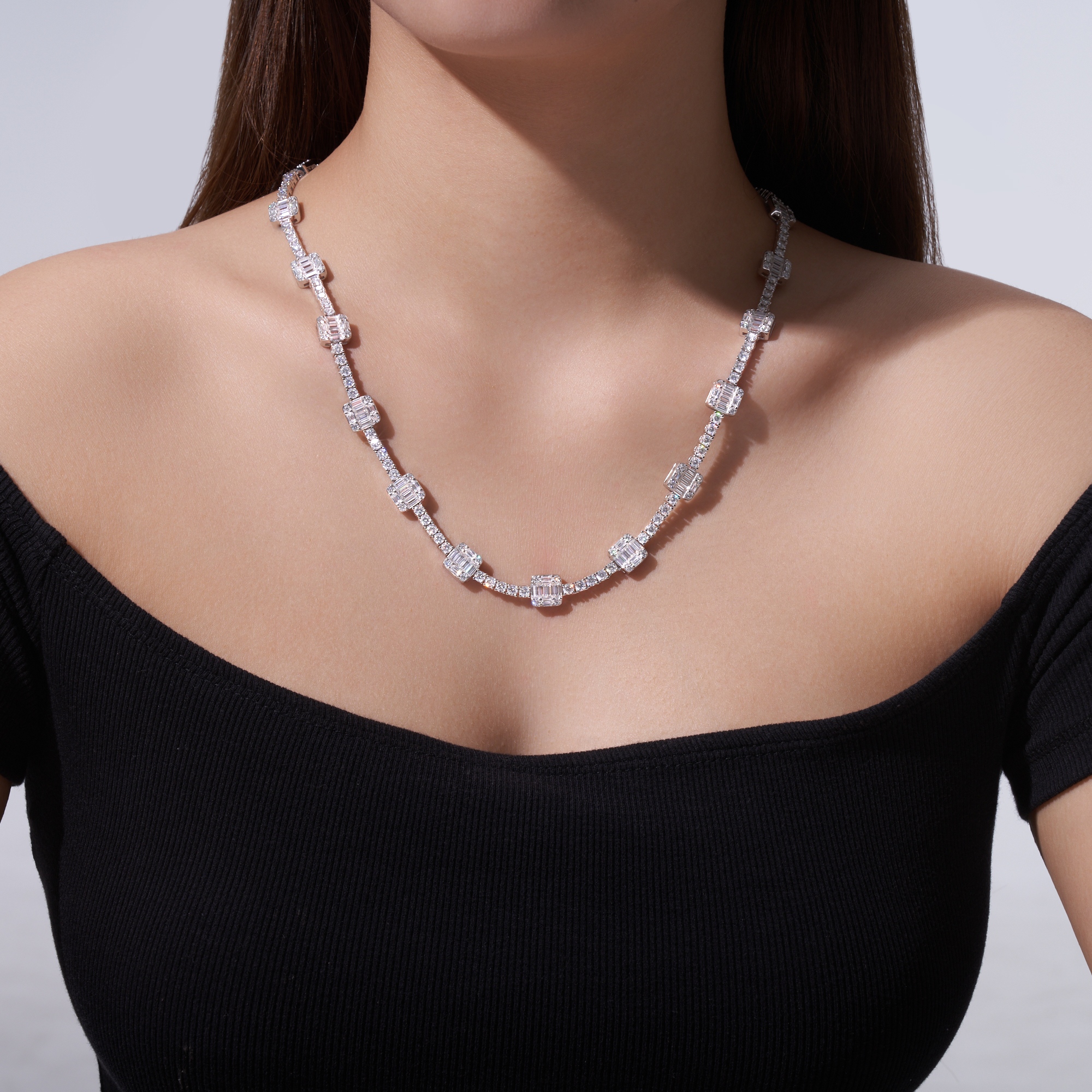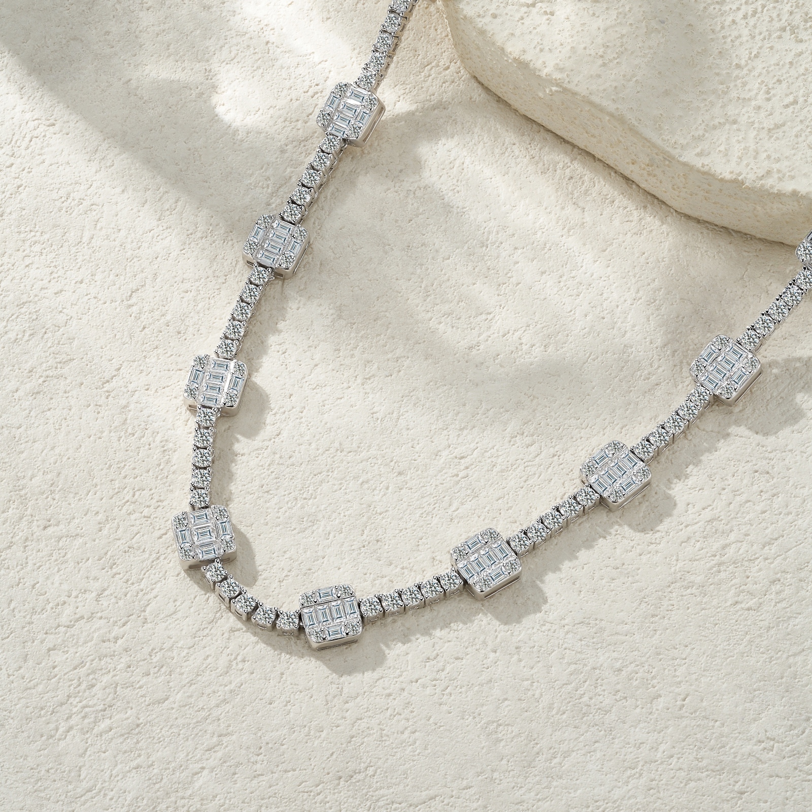 A Luxurious And Fashionable Minimalist Jewelry Pendant Necklace Set With Top-quality Moissanite, Made Of S925 Silver Electroplated With Platinum.