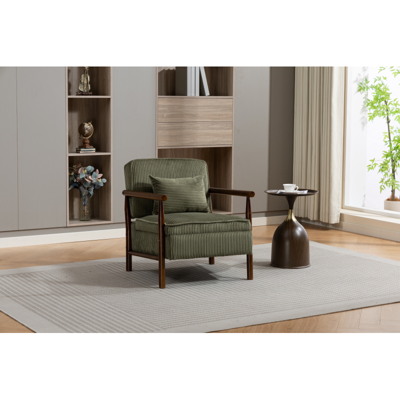 Product Name:Storage Chair,Mid Century Modern Accent Chair with Wood Frame, Upholstered Living Room Chairs with Waist Cushion, Reading Armchair for Bedroom Sunroom