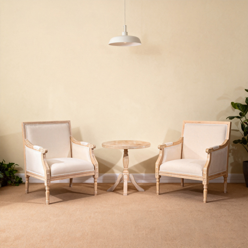 Product Name:French Accent Chair Traditional Wood Frame Linen Upholstery Distressed Finish Home Decor, Single