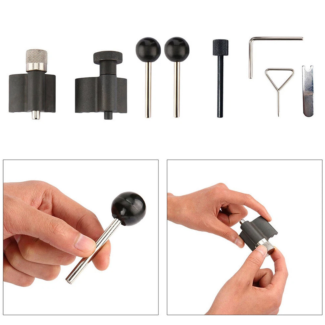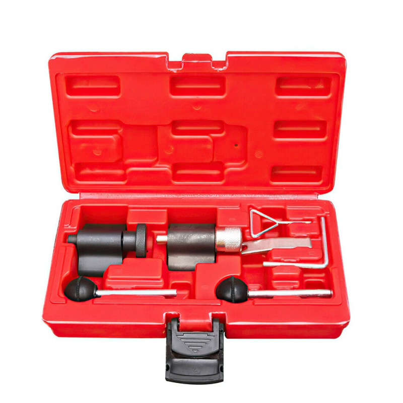 4. Includes 7 tools including crankshaft locking tool, camshaft timing pin, tensioner locking tool, tensioner locking pin, etc. Comes with a plastic tool box for easy storage and transportation.