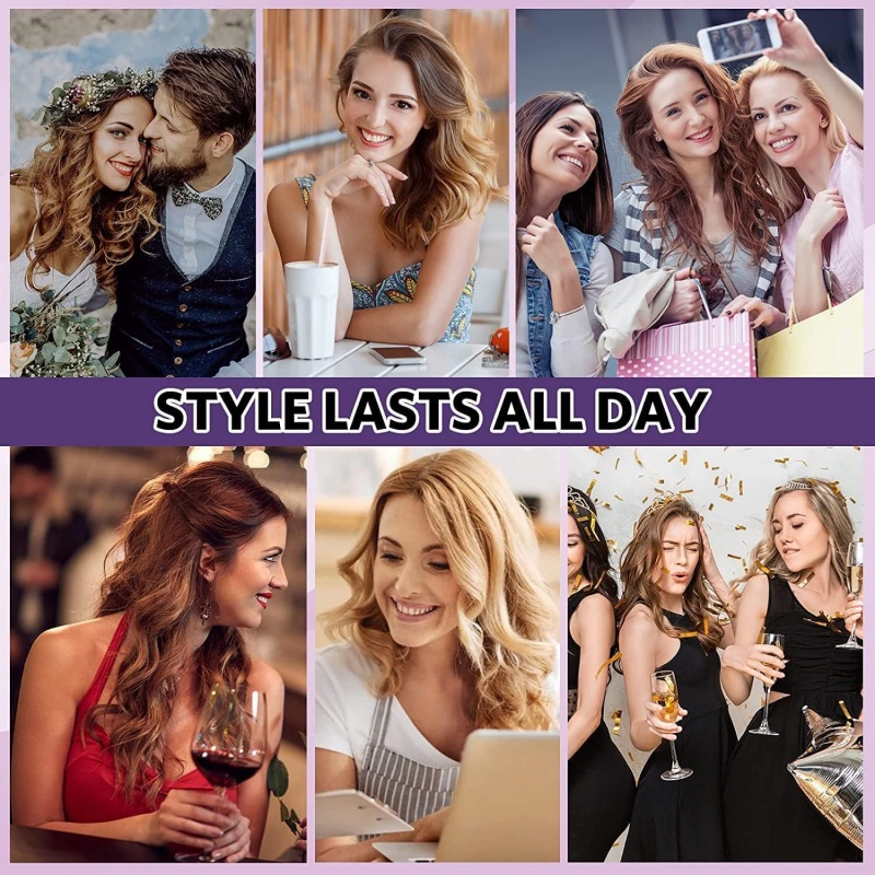 【3 Heat Settings & Lasts Over 24 Hours】This curling iron is designed for different hair types and offers precise temperature control. Set it to 160°C for delicate or damaged hair, 180°C for soft or healthy hair, and 200°C for thick or coarse hair. With tourmaline-ceramic technology, it releases millions of negative ions to neutralize static electricity, leaving your hair soft, hydrated, and with enhanced shine.