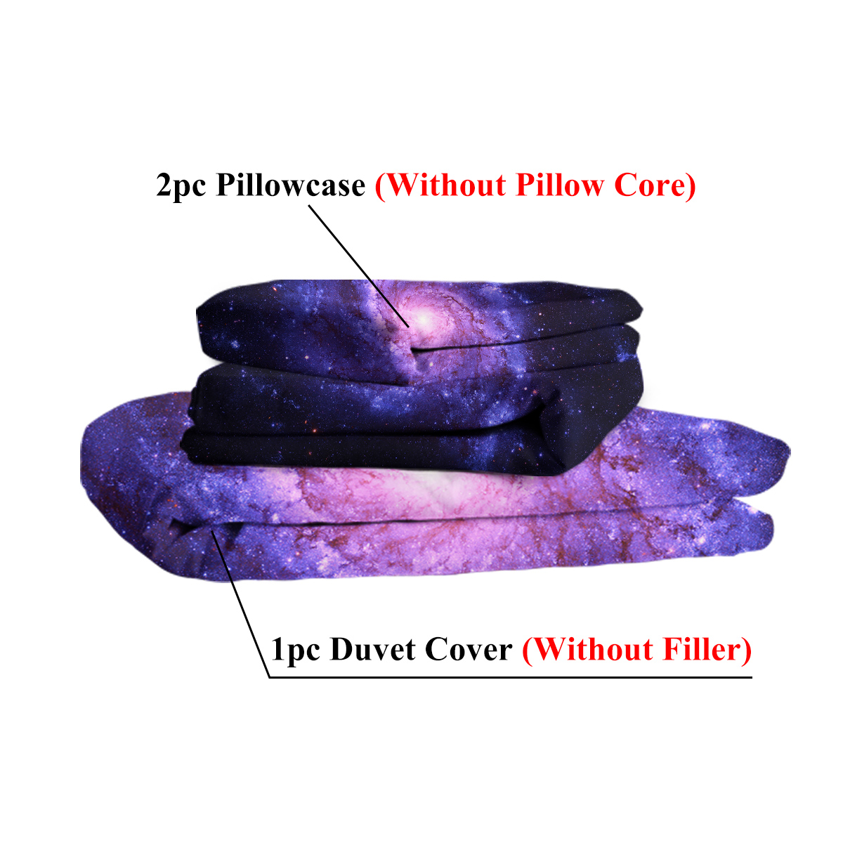 1.ATTENTION: Twin set come with one duvet cover 68" by 86" and two standard pillow shams 20" by 26"; Full set come with one duvet cover 80" by 90" and two standard pillow shams 20" by 26"; Queen set come with one duvet cover 90" by 90" and two standard pillow shams 20" by 36". DOES NOT include any inside fillers and accessories.