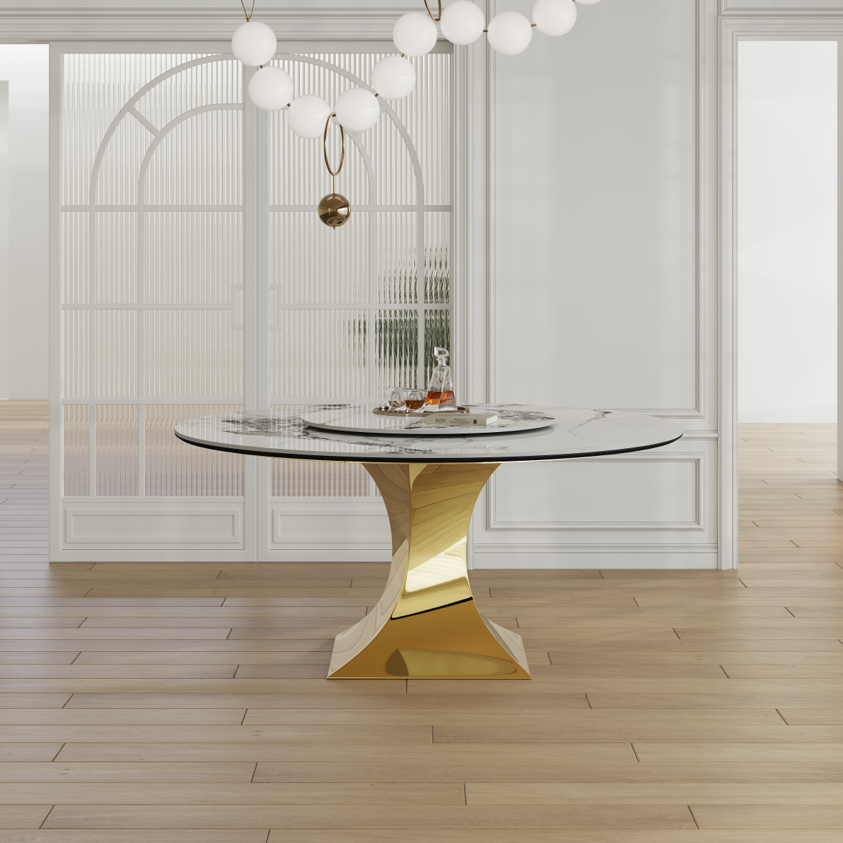 Product Name:59" Round Sintered Stone Dining Table Set with Gold Stainless Steel Hourglass Base - Modern Luxury Marble-Look Kitchen Table for 4-6 People, Scratch & Heat Resistant Surface-Only table