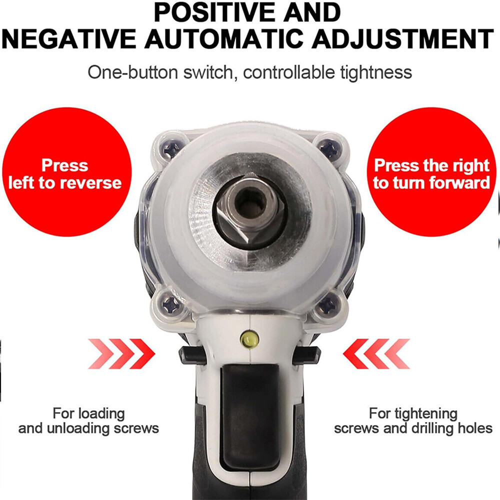 1000Nm 1-2in Electric Cordless Impact Wrench Drill Gun - 2 Battery Ratchet Driver