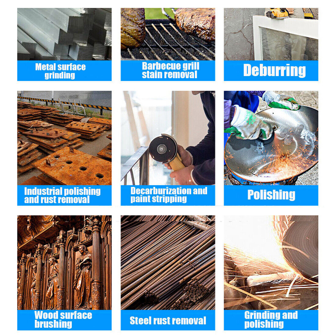 - Suitable for metal surface cleaning, derusting, grinding, dusting, deburring, polishing, stripping residue