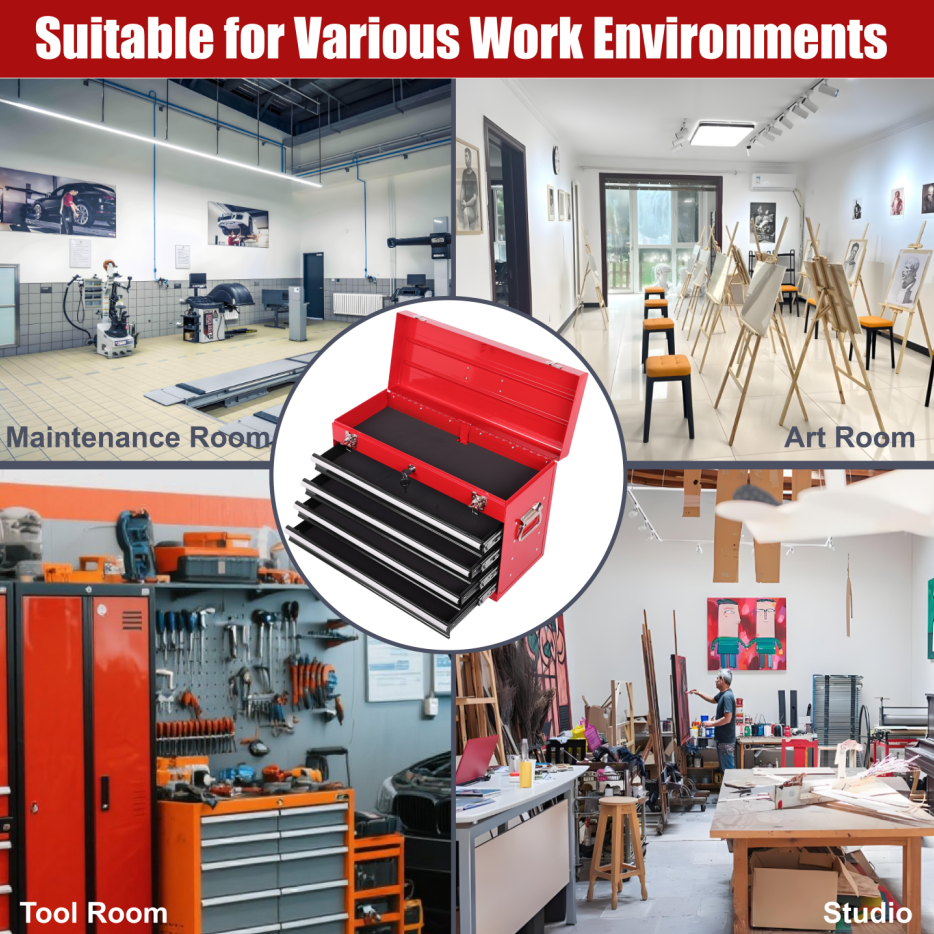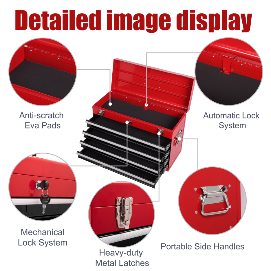 Product Name:Heavy Duty Metal Tool Box, 21-inch, Portable Metal Tool Box with 4 Drawers, Small Tool Chest with EVA Liners, Ball Bearing Slide Drawers Locking & Powder Coated Finish, Multi-Function Tool Organizer