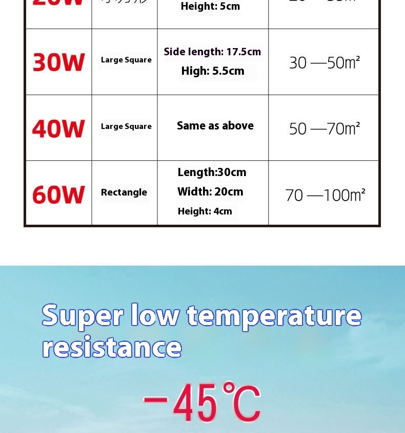Light source power: Oval 12W, Oval 15W, oval 20W, square 30W, square 40W, 60W