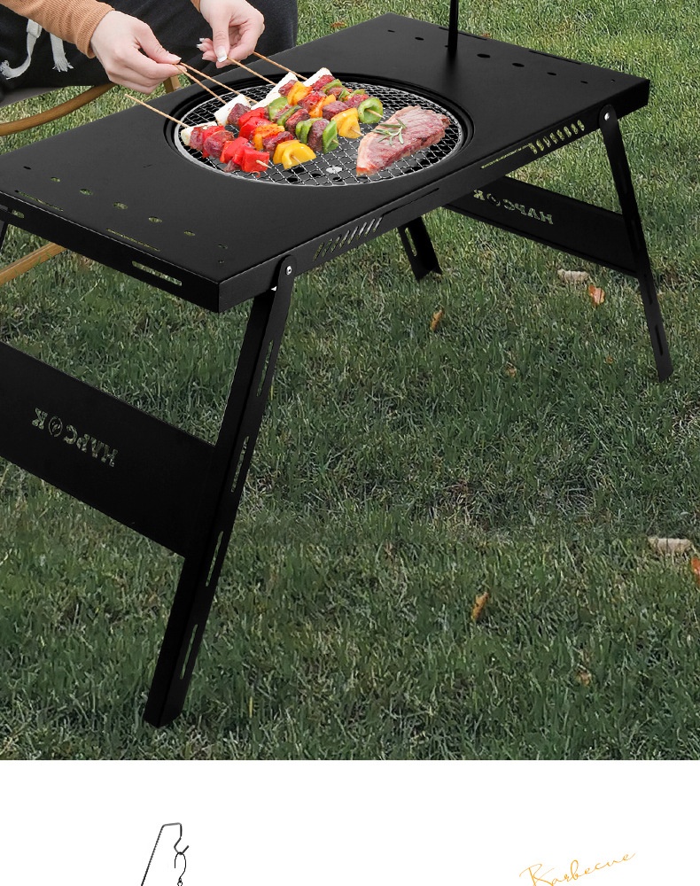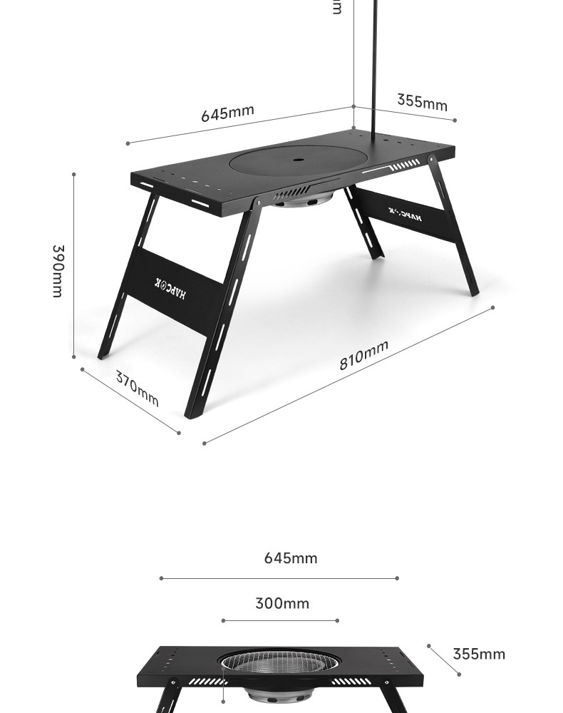Color: Camp light pole-black round stove table, camp light pole-black square stove table