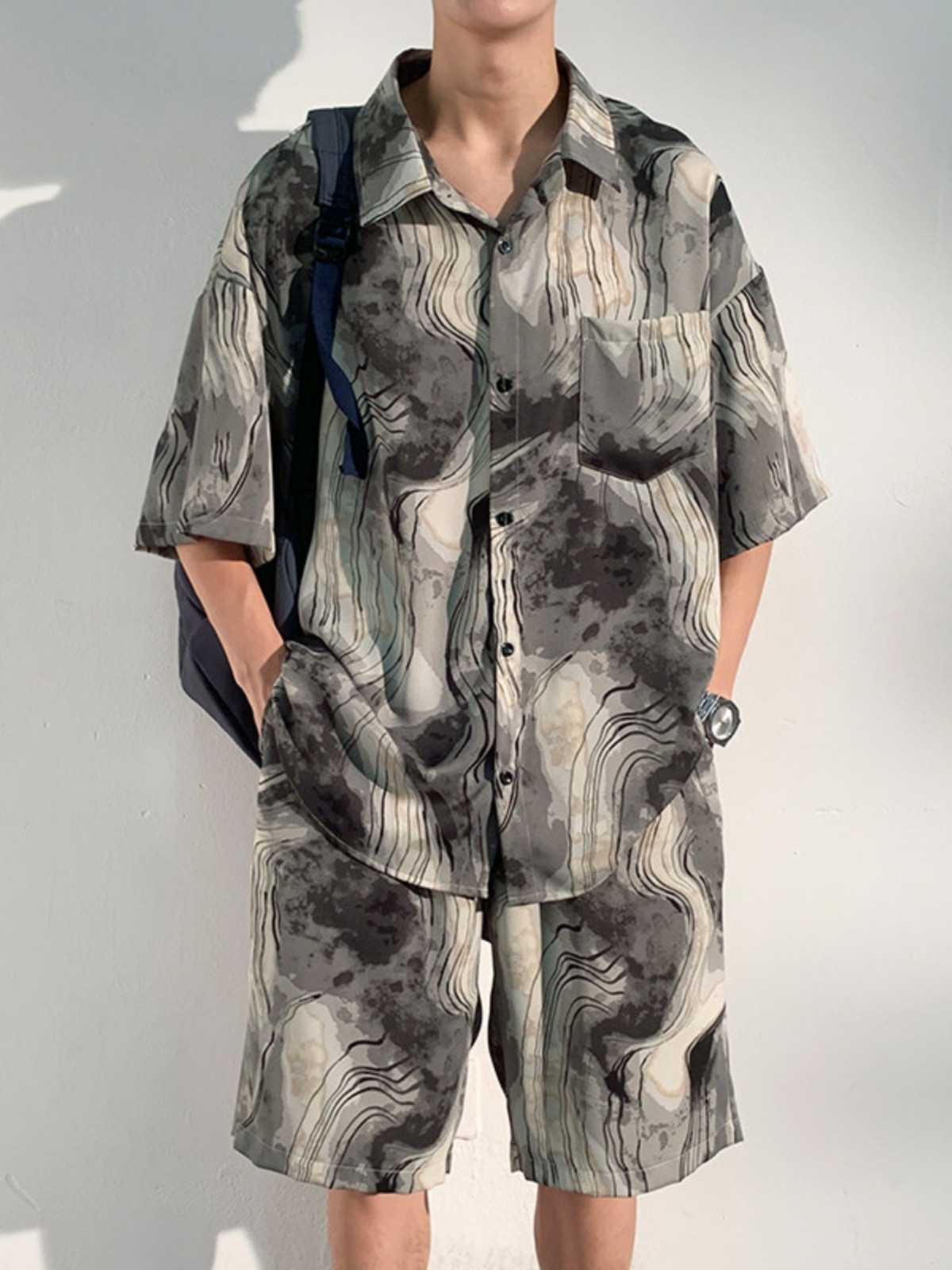 Ink Tie Dye Floral Shirt Men's Short Sleeved Shirt