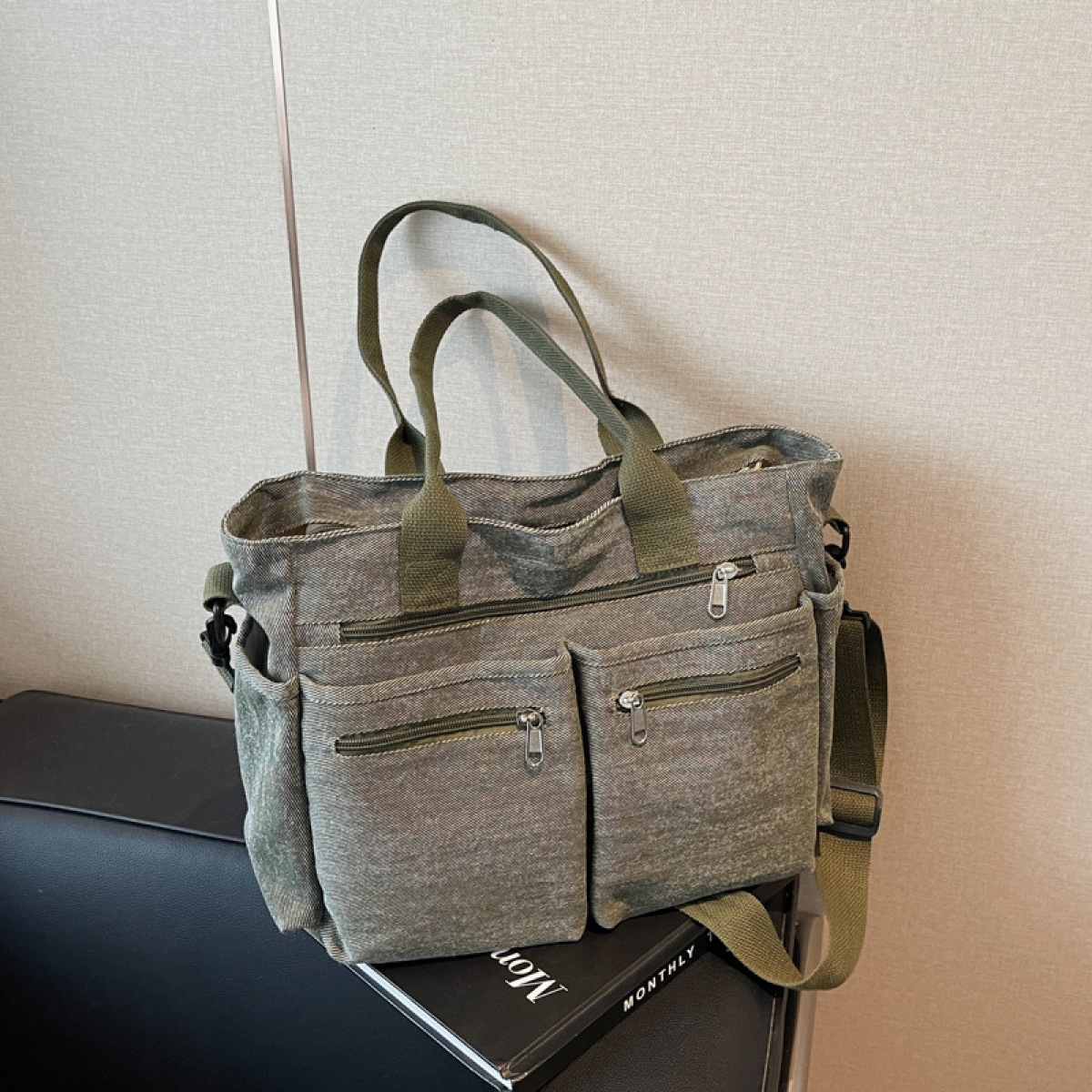Color: black, dark blue, light blue, Army Green