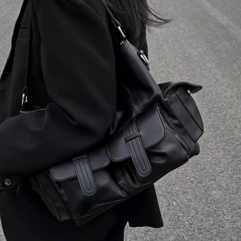 Large Capacity Simple Neutral Dark One-shoulder Oblique Bag